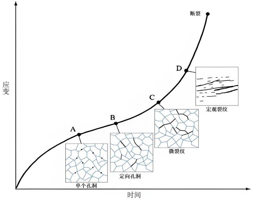 Monkman-Grant模型将第二阶段的蠕变应变速率和断裂时间相关联。此种方法适用于大多数金属材料和合金的剩余寿命预测。认为在蠕变第二阶段应变的变化率是一个恒定值,不随时间变化直至第三阶段,并且断裂时间和第二阶段蠕变应变速率与试验温度相互独立。在工程应用当中,先进行一系列的短时蠕变试验(一般小于1000h),可以得到Monkman-Grant方程相关参数,就可以预测长时试验的结果(大于1000h)。