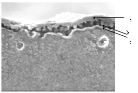 图2.6 焊缝剖面腐蚀形貌和腐蚀产物 2000×