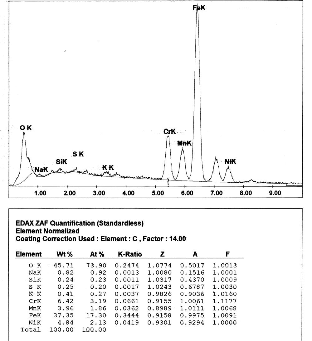 图2.7 熔融的颗粒状腐蚀产物能谱分析结果