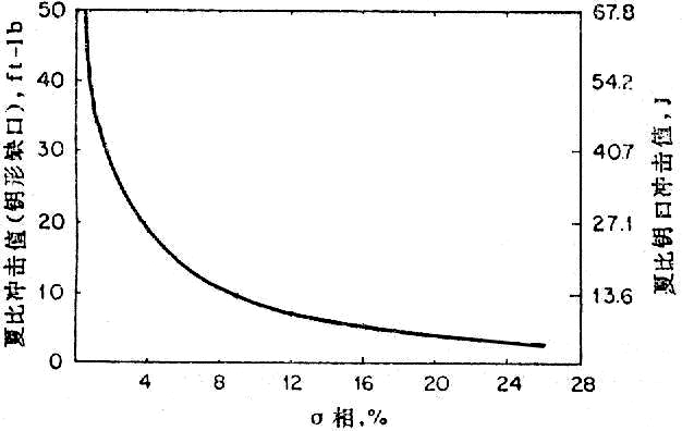 图1.2 σ相的析出数量对Fe-Ni-Cr系不锈钢冲击韧性的影响