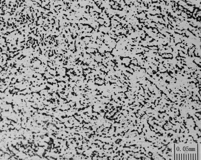 图1.3为炉管焊缝处母材的金相,材料为奥氏体,晶界上分布碳化物。HP40炉管为离心铸造,其显微组织为:奥氏体+共晶体(奥氏体+碳化物)。炉管组织正常,晶粒没有明显长大,碳化物析出不明显。说明炉管没有超温。