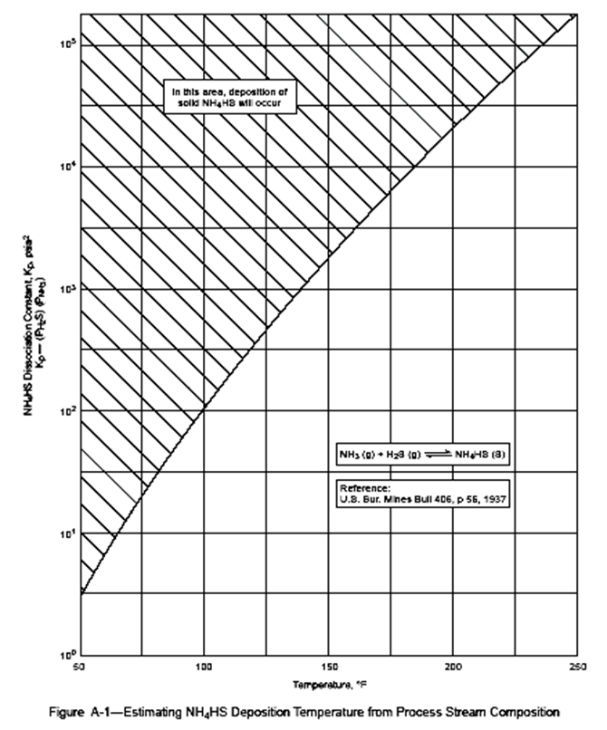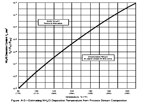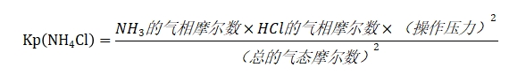 根据模拟,空冷入口前水平管温度在180℃附近,根据氨盐沉积温度图查得该温度下,当Kp(NH4Cl)大于8.2×10-4时结晶产生。Kp(NH4Cl)计算公式及所需参数如下。