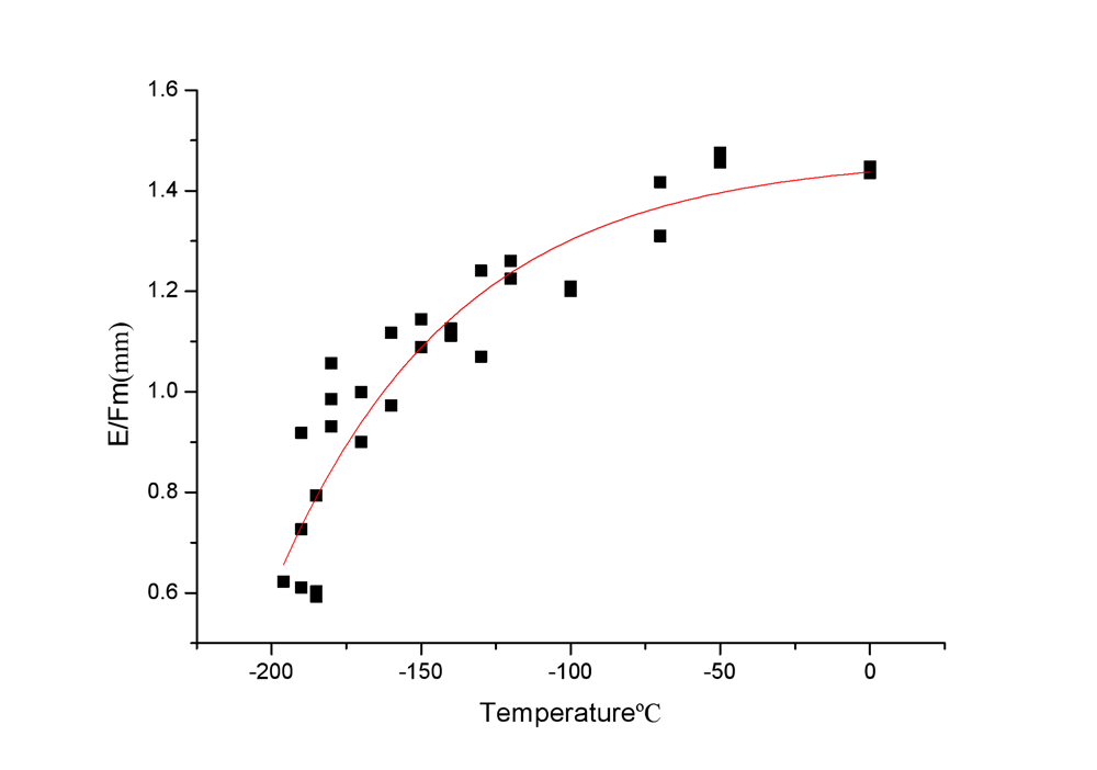 分别在不同温度进行小冲杆实验,进而拟合出试样的韧脆转变温度。